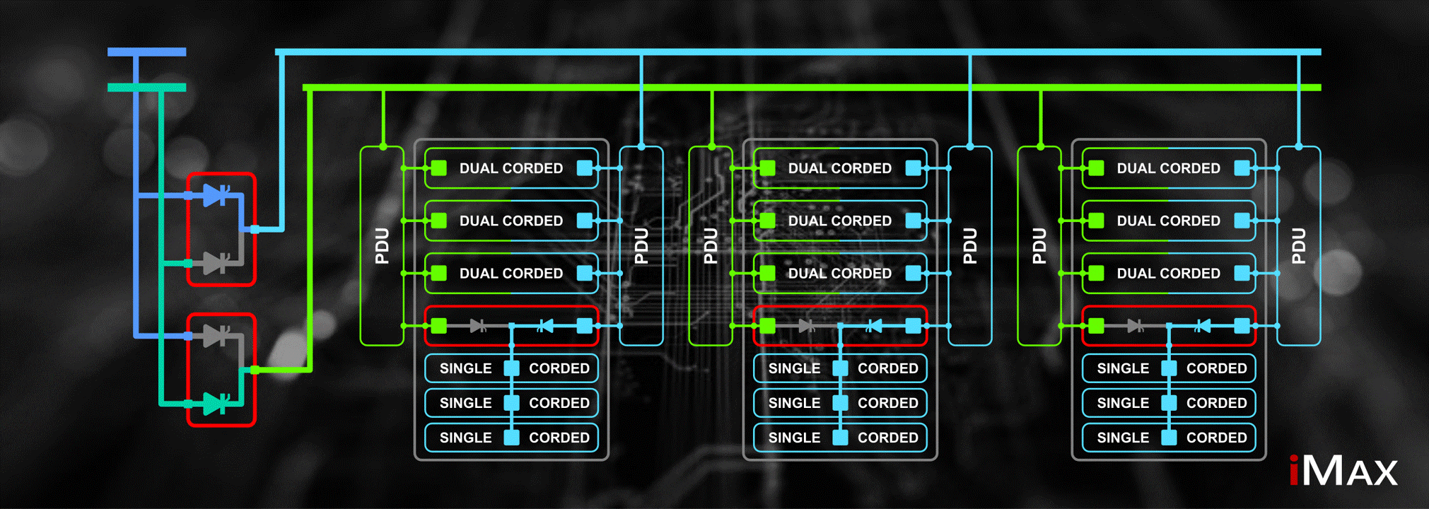iMAX avoids critical equipment power supply disruptions by transparently changing to a secondary source in case of failure of the preferred.